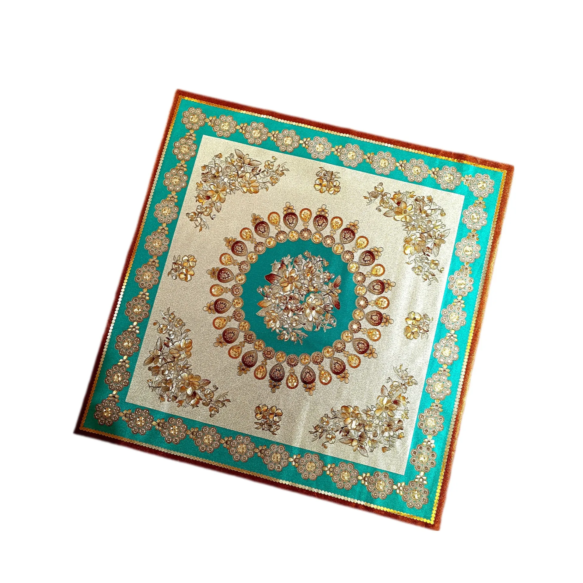 سفره صد در صد نخ و تولید نساجی دُر هنر یزد دارای ریشه و با سایز 100×100 سانتیمتر (با چند سانت تلرانس تولید)و با وزن 180 گرم (با چند گرم تلرانس تولید) از زیباترین طرح های تولید شده سفره یزد است.